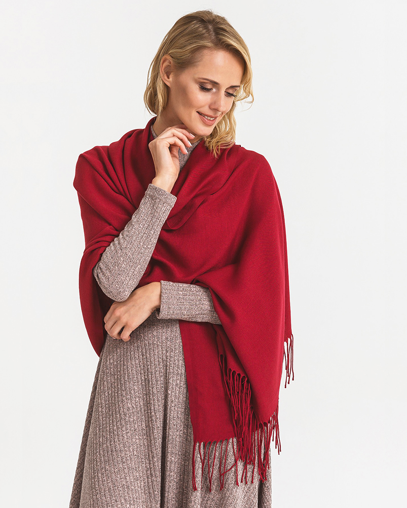 Бордовый кашемировый палантин